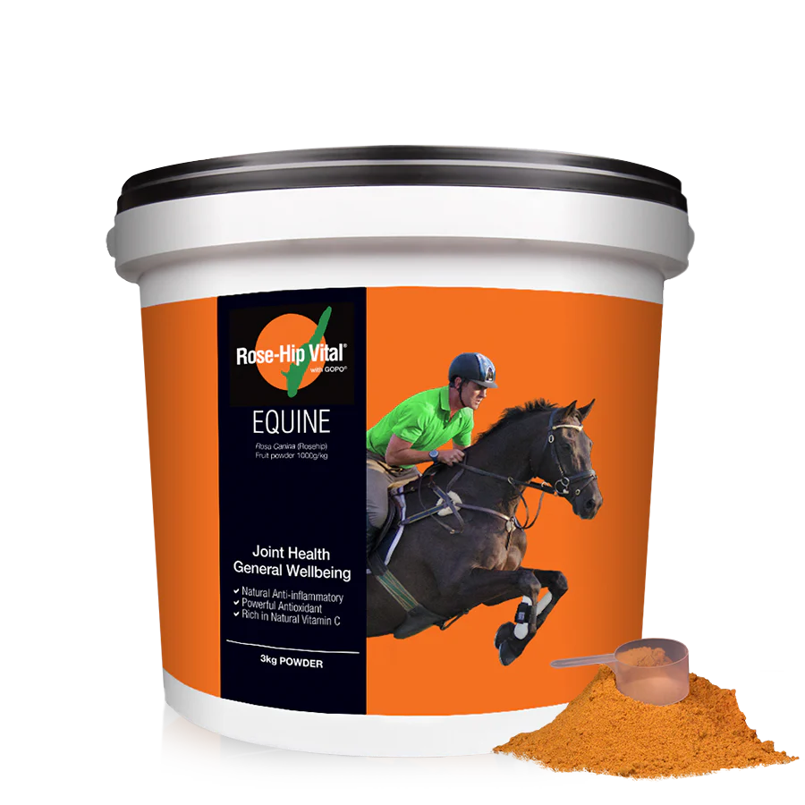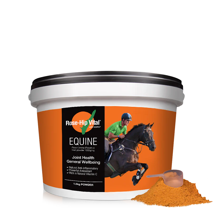 Rose-Hip Vital® Equine 是一款純植物製劑,玫瑰果天然具備消炎功效,並對免疫系統提供支援,可為您的馬匹的關節健康和整體健康提供支持。 Rose-Hip Vital® Equine 由採用專利工藝製造的玫瑰果製成,經科學和臨床證明可以減少炎症,保護軟骨,改善整體健康。