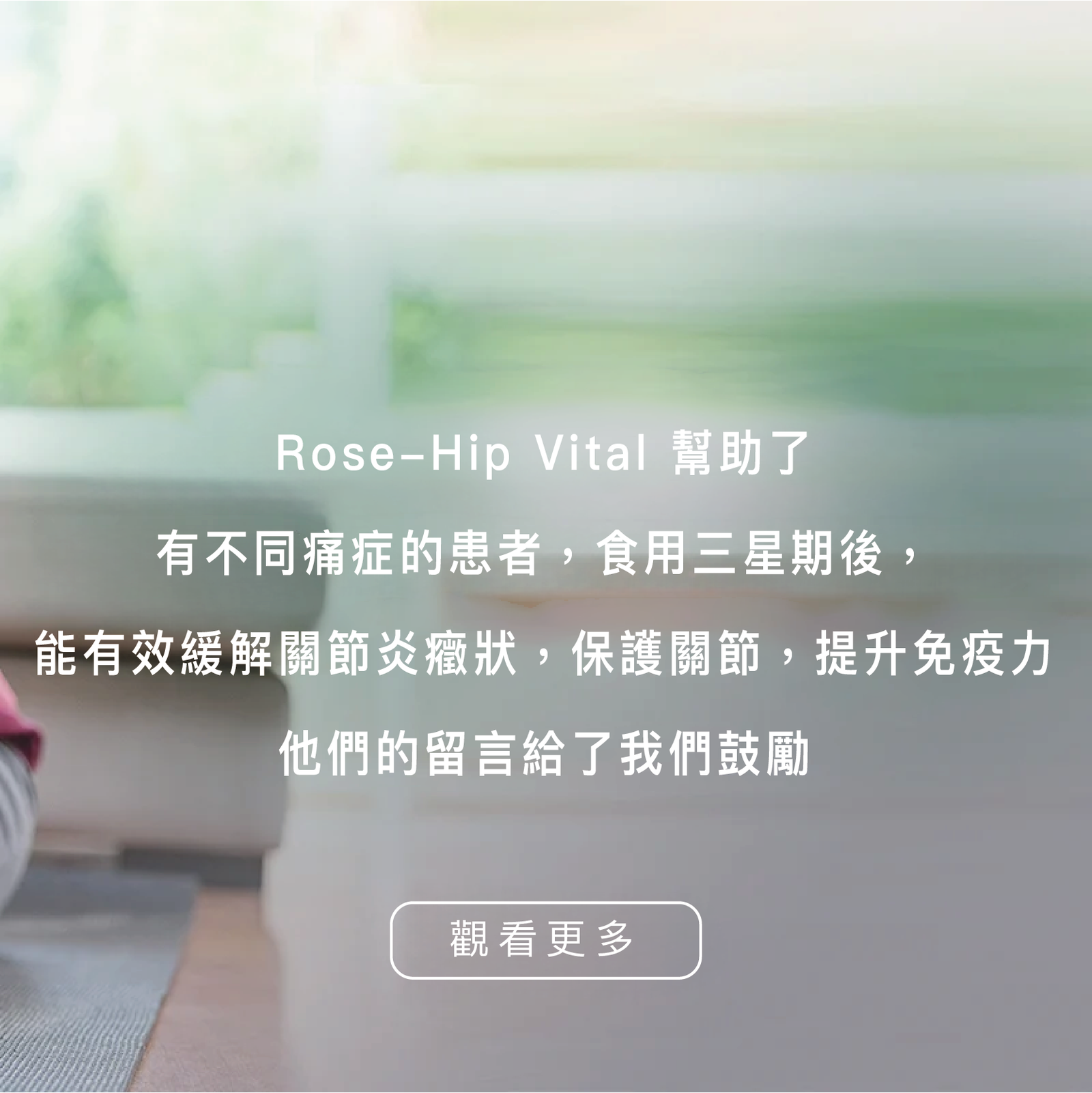 Rose-Hip Vital® 得到 30 多篇科學論文的支持,其中包括 9 項臨床試驗,是 Rose-Hip Vital®產品獨有的,這些論文已在國際同行評審期刊上發表,現在被公認為 Rosehip 產品製造領域的領導者.
