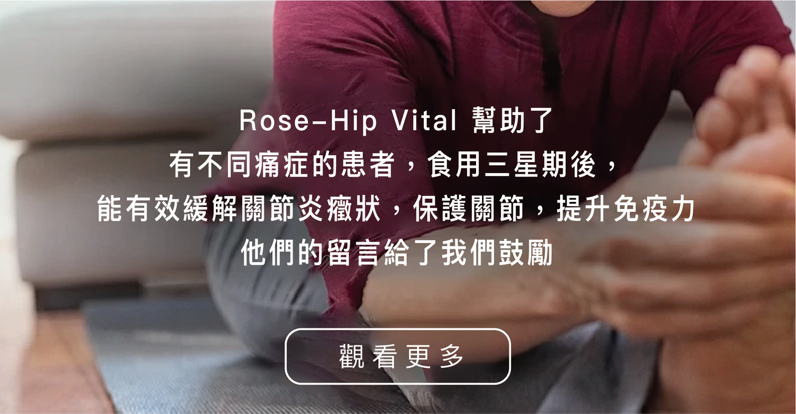 與其它關節健康的免費療法不同,Rose-Hip Vital® 不僅僅是一款關節補充劑。它的抗炎特性有助於緩解全身性炎症,有助於減少與各種疾病相關的腫脹、炎症和疼痛。豐富的天然維生素 C 和強大的抗氧化劑組合提供免疫系統支持,有助於阻止對關節的攻擊、修復受損組織並改善整體健康和提升生活行動力。人體研究還表明 Rose-Hip Vital® 有助於改善腎臟和心血管功能,同時有助於降低血糖水平。